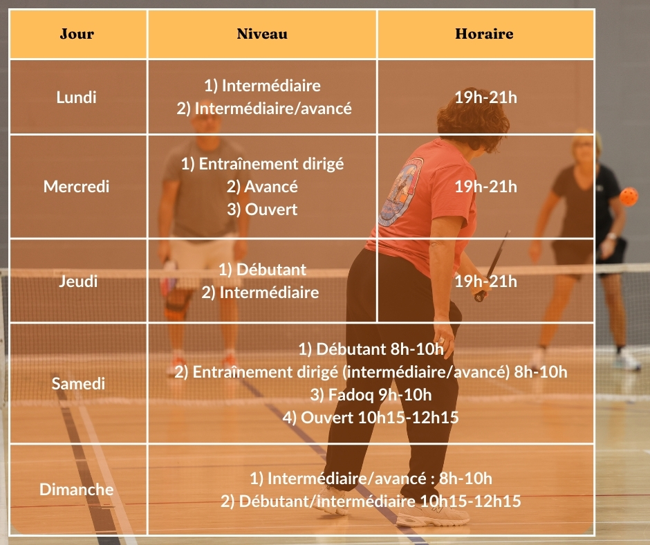 Plusieurs options s'offrent à vous pour vous permettre de pratiquer le Pickleball dans nos plateaux.